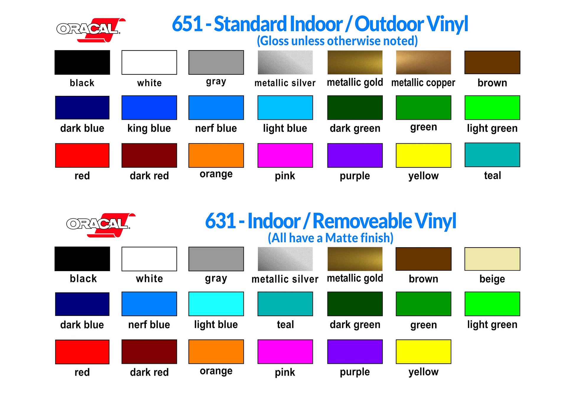 STANDARD VINYL - Indoor/Outdoor (ORACAL 651)